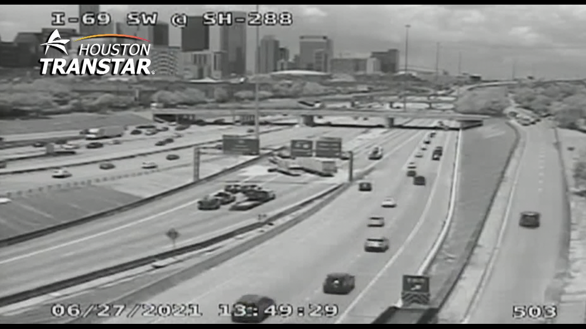 Southwest Freeway Back Open At Hwy 288 After Truck Crashes Into Wall Officials Say Khou Com
